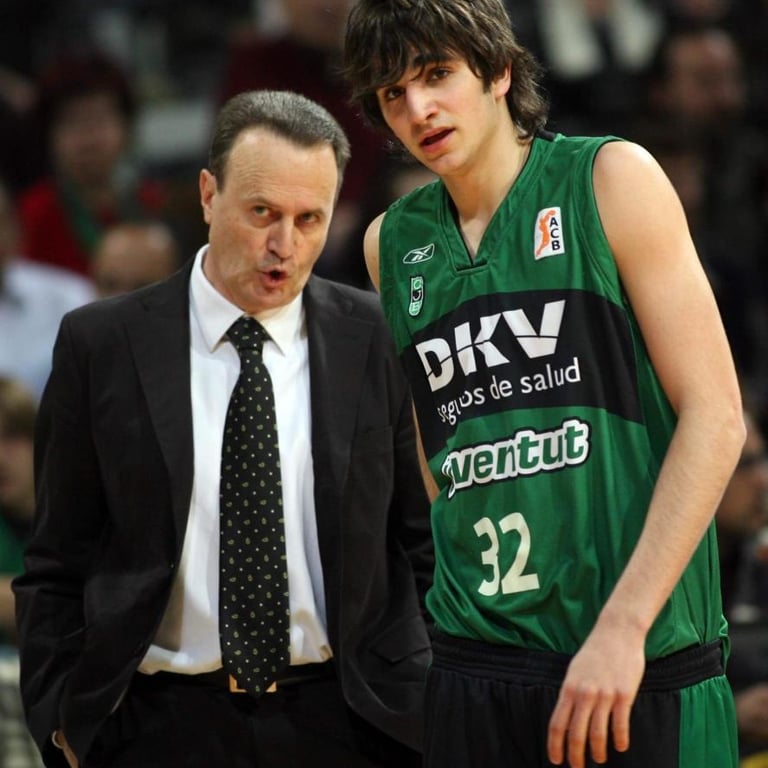 He remained at Barcelona until 2002, winning another Korac Cup in 1999 before returning, after nearly two decades, to rival Joventut Badalona to restore their top-tier status. With a limited transfer budget, Aíto turned to the club's youth academy and placed his faith in young players. He promoted 17-year-old Rudy Fernández and 15-year-old Ricky Rubio to the senior team, nurtured them under competitive pressure, and won the FIBA Cup in 2006 and the EuroCup in 2008. Before heading to the NBA, both players praised their coach’s role in their development.