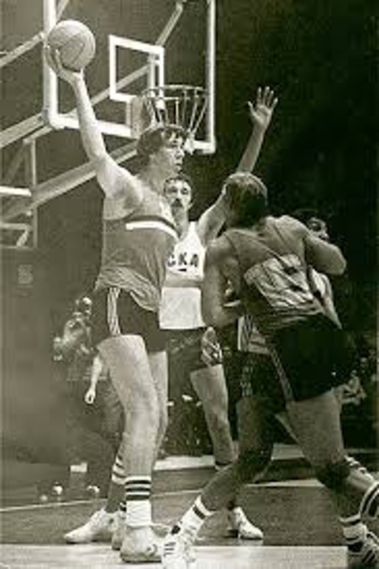 The decisive moment of Sizonenko’s entry into sports came in 1976, when he had to go on an errand to the city of Novaya Kakhovka. On his return, he found himself on the same bus as the basketball team of Spartak Nikolaev. The team’s coach, after recovering from the shock of seeing a 17-year-old who already exceeded 2.17 meters in height, approached him hesitantly, spoke to him, and invited him to try his luck in basketball. Alexander initially refused the proposal; until that moment he did not even know what shape a basketball had, and his shy nature held him back from taking such a big step. However, word of the existence of a man with his physical attributes soon reached the ears of one of the many “scouts” searching for new blood on behalf of Vladimir Kondrashin, the coach of Spartak Leningrad and Olympic gold medalist in Munich in 1972.
