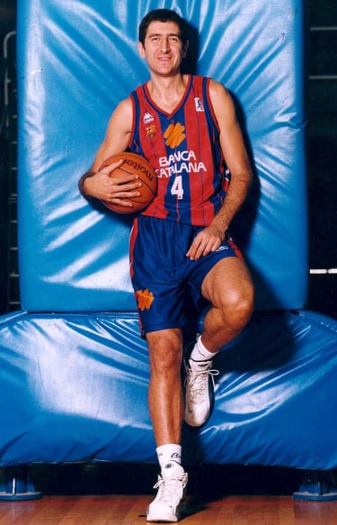 The career of the Seville-born power forward is deeply linked to two icons of Spanish basketball: one club and one man - FC Barcelona and Aíto García Reneses. Aíto was the first coach to recognize Andrés’s talent and, in 1978, made him a member of the legendary Cotonificio Badalona at just 16 years old, alongside players like "Rambo" Héctor Perotas, Agustín Cuesta, and Quim Costa, teammates he would later reunite with in Barcelona. This team is remembered in Spanish basketball history for several innovations introduced by Reneses, such as practicing twice a day, the intense “karate press” defense and his insistence on leveraging Jiménez’s speed, who despite being 2.06 meters tall was often the primary finisher on fast breaks. With a very modest budget but great faith in young talent, Cotonificio reached 4th place in 1978 and the Korac Cup semifinals the following year. By 1982, they were consistently in the top five and qualifying for European competitions. In 1983, Reneses moved to Joventut Badalona and his first request to the management was to sign Jiménez, by then a European silver medallist with the "Furia Roja." With "Pinocchio" on board, the team climbed all the way from a 7th-place finish to reaching the top three and the 1985 finals against Real Madrid.