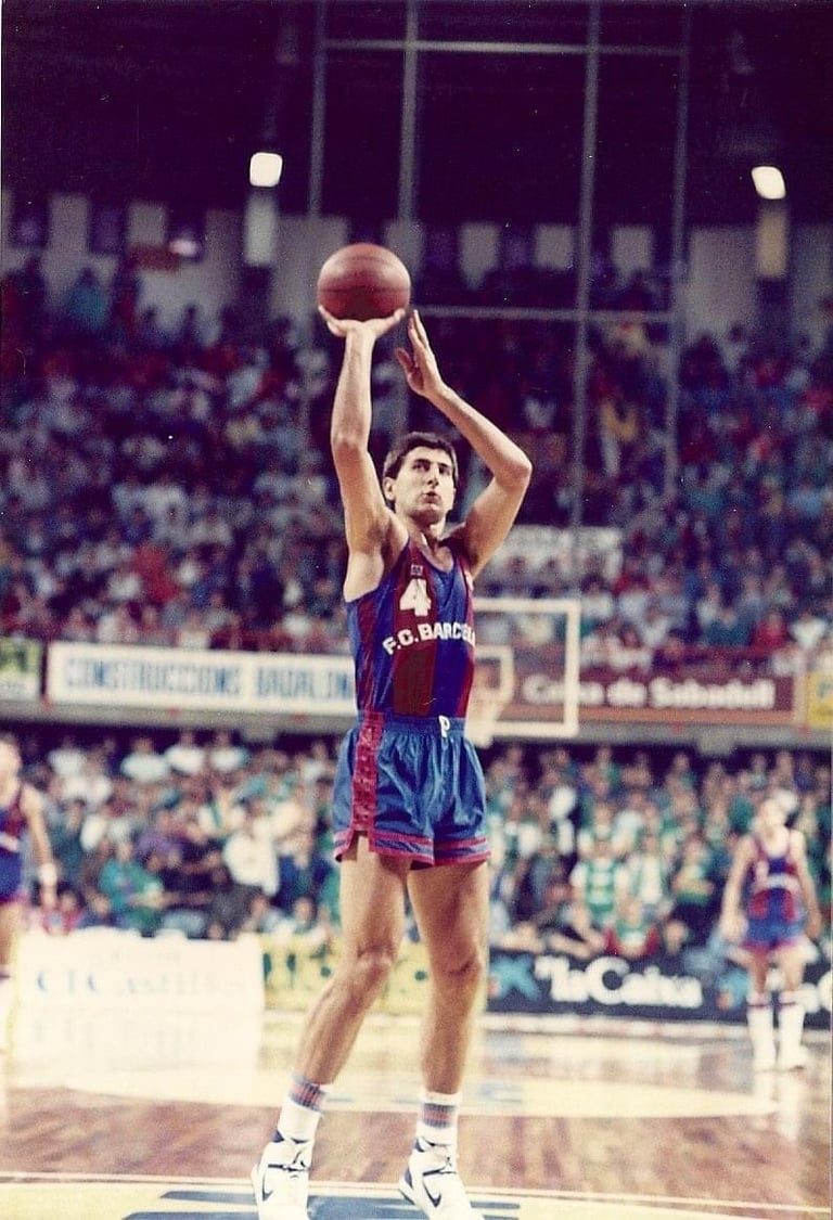 By 1986, Jiménez, now 24 and hungry for titles, followed his mentor to the "Blaugrana" side of Barcelona. After the Spanish World Championship, he signed with Barça and claimed the starting role wearing jersey number 4. He fit perfectly into the lineup, often playing as a small forward (position 3), and even began shooting more from the perimeter. As expected, the trophies followed: the 1987 Korac Cup marked the beginning, followed by four straight Spanish league titles. Reneses’s team thrived on explosive transition play and when Barcelona decided to run the floor, they were trully unstoppable. With their fast-paced style, Barça and Jiménez made three consecutive runs at the EuroLeague title but fell to the legendary “Yugoplastika" babies team -in the 1989 semifinal and the finals in Zaragoza (1990) and Paris (1991). In the 1991 Paris Final Four, Jiménez was sidelined by injury and watched from the stands alongside Reneses, who was by then serving as a technical advisor. That injury also caused him to miss the league finals and the chance to win another medal with the national team at EuroBasket in Rome. He returned the following season but had lost his starting role. Still, his experience and skill made him an invaluable bench contributor to Reneses, who had returned to the benches in order coach Barça again. However, the league landscape had shifted: Joventut and Real Madrid dominated for the next four years. Barça returned to the top in 1995, but the EuroLeague title remained elusive. The vicious circle of “The Lost Final Fours" was replayed twice more in Tel Aviv and again in Paris, with a familiar heartbreak.
