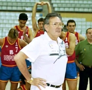 Antonio Díaz Miguel, born in 1934, was a towering figure in the history of Spanish basketball. Twenty-seven (27) years in a row at the helm of the national team with participation in 13 EuroBasket, 4 World Cup, and 6 Olympic tournaments. The numbers are shocking and seem extraordinary in today's era, where everything is judged on quick results alone and patience seems like a forgotten virtue, but Antonio Díaz Miguelwas not an ordinary coach.