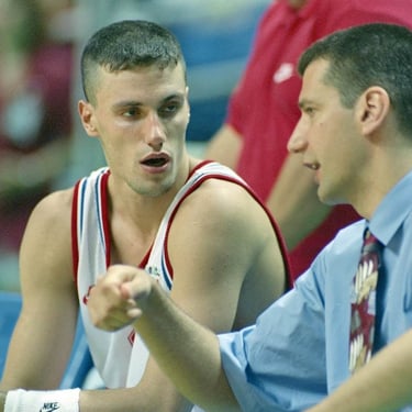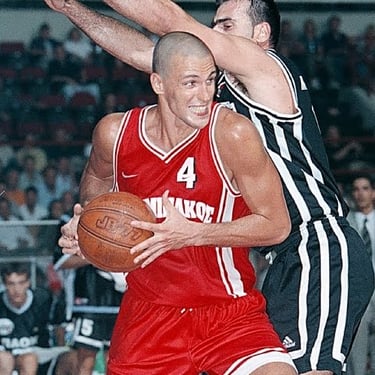 Bologna and Komazec parted ways with relief, Danilović returned to his throne, and Komazec went back to the welcoming arms of Varese. In the familiar environment that provided him security, the Croatian unfolded his talent, even if his averages had dropped, leading the team to qualify for the European Championship after eighteen years. At 28, Komazec had nothing left to prove in Italy. He wanted a club with higher ambitions than Varese and a coach who would trust him. Dusan Ivković, who was looking for a player with Komazec’s qualities—someone who could play as a small forward or shooting guard with excellent long-range shooting—when he learned that Komazec was available, put aside other potential options (Bill Edwards, Mario Eli, and Dale Ellis) and decided to trust his former player from the Yugoslav national team. On July 16, 1998, Komazec, with a newly shaved look, signed a 1+1 year contract and took the red-and-white jersey with the number 4. Everything seemed ideal: Olympiacos had acquired a player in excellent condition with proven scoring ability, and Komazec had the motivation to prove he could carry a team at the highest European level.