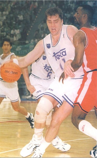 Naturally, the Americans took notice despite logistical challenges in scouting him, relying solely on international tournaments. And each time, Sabonis left them amazed. They eagerly anticipated the 1984 Los Angeles Olympics, where he was expected to face Patrick Ewing, but political tensions prevented the Soviet Union's participation. Meanwhile, Sabonis starred with his beloved Žalgiris Kaunas, breaking CSKA Moscow's dominance by winning the Soviet Championship in 1985—the first of three consecutive titles. That summer, he also earned MVP honors at EuroBasket 1985 in Stuttgart, leading the Soviets to gold. He will try to do the exact same thing at club level, reaching the 1986 Champions Cup final against Cibona, but the punch he will throw at Mihovil Nakić will lead to his ejection and Zalgiris' defeat.
