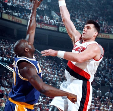 Once he set foot on American soil, Portland’s medical staff was utterly shocked by the results of his lab diagnostic tests, as his legs were nearly destroyed. Scepticism surrounded Sabonis’ ability to handle the NBA’s intense schedule. But soon enough he proved everyone wrong. He joined the team and night after night battled the league’s best centers during an era dominated by big men. The outcome? Rookie of the Year candidate, a Sixth Man of the Year nominee, part of the NBA All-Rookie First Team, and a participant in the Rookie All-Star Game. Yet, the lingering question remained: how different might NBA history have been if Sabonis had avoided serious injuries and joined the league in 1986? Sabonis ultimately spent seven seasons in Portland, with his best year being his third one, averaging 16 points and 10 rebounds. By his final season, his role had diminished due to age. He retired from the NBA, citing mental and physical exhaustion. Despite the strenuous NBA schedule, he always answered the call for his beloved national team of Lithuania, earning a silver medal at the 1995 EuroBasket and a bronze at the Atlanta Olympics of 1996. His last major tournament was the EuroBasket of 1999 in France at age 35. After retiring from the NBA, he played one final season with his first team, Zalgiris Kaunas, before officially retiring in 2005.
