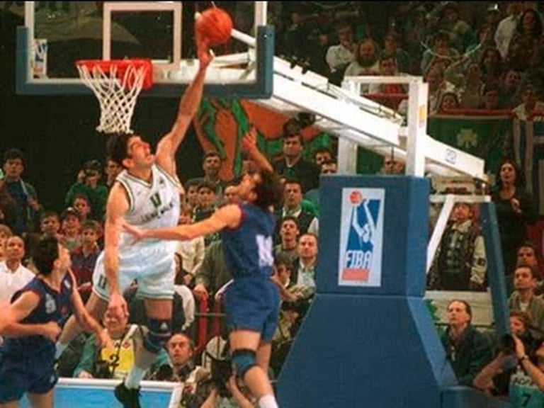 In a jaw-dropping sprint, covering nearly the entire court in just three strides, Stojan Vranković appeared out of nowhere, trampling poor Korfas in the process, and swatted the ball off the backboard in the nick of time.
