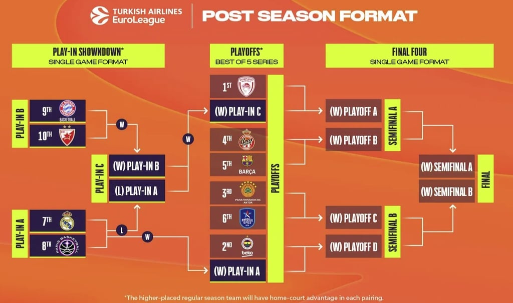 Have a look at the playoff tree of the competition's postseason format for full information on the (potential) match-ups.