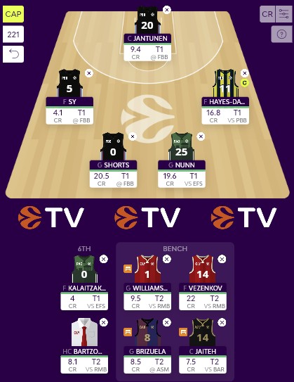 Sasha Vezenkov (22.2 CR). The player with the highest PIR in the game, could not be missing. We are eager to see -much like in Sort's case- if he will be able to carry his performances over to the playoffs, or even go a level higher as an MVP candidate. He will also be our fall back option as T2 captain.