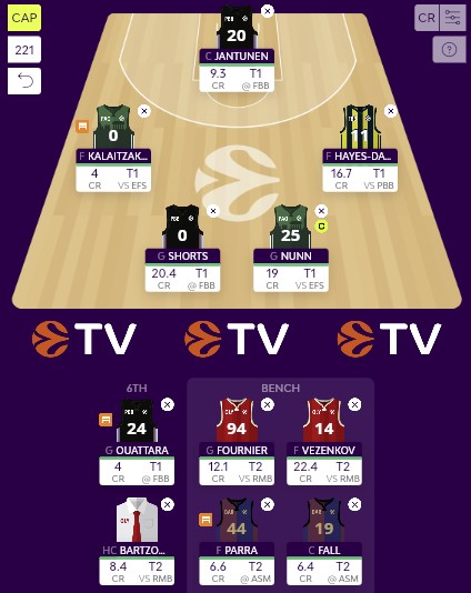 Sasha Vezenkov (22.4 CR). The player with the highest PIR in the game did not disappoint in G1 so he will also be our fall back option as T2 captain.