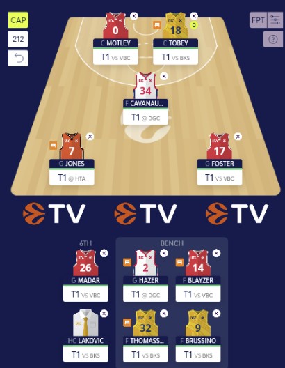 As mentioned earlier, we believe home teams have the advantage in the second set of semifinal games. We expect close matchups, and as fans of the efficiency of Spanish teams, we decided to trust Jaka Lakovic (7.8 CR). This choice also helped us with our budget.