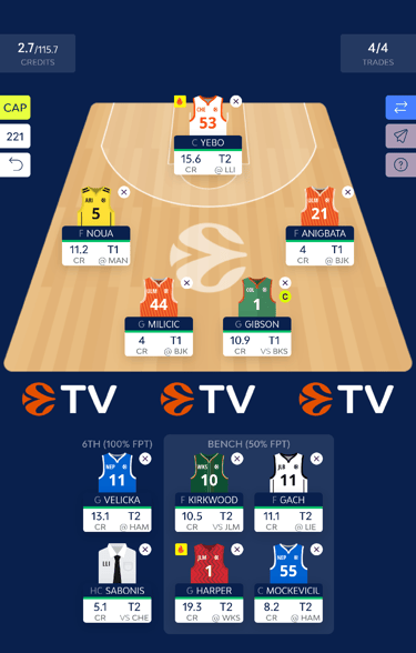 As mentioned in the previous Round, our plan is to replace two mediocre Forwards, JAMES and WHEATLE, with higher-quality options who can support our team in the long run. JAMES also recorded his best performance so far with 11 points, making this an ideal moment to sell. We will also move on from FLYNN, whose value is at its highest this season. Moreover, Bahcesehir recently added another dominant guard, FORD, which is likely to negatively affect FLYNN’s minutes and potentially his PIR output. We prefer not to take that risk.