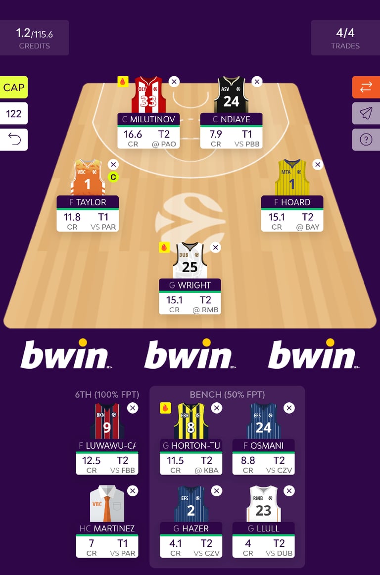 In order to stay on top of any last minute roster & team news/absences, we are using the ROTOWIRE page and their fantasy section for Euroleague basketball here. ROTOWIRE consistently provides the latest updates even with just a couple of minutes remaining before tip-off! So keep an eye and cut your losses short.