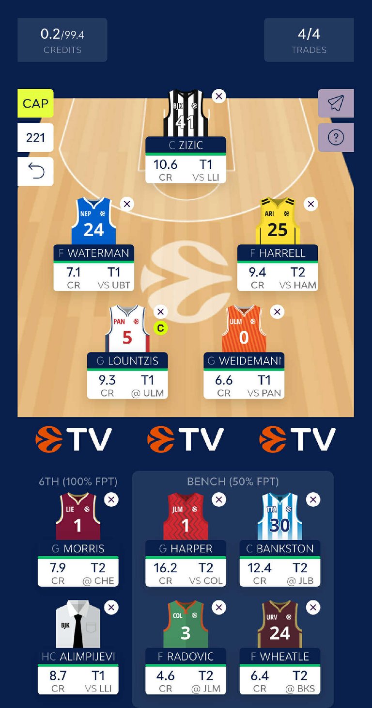 We considered the fourth substitution to be ZIZIC (10.6 CR) who was not convincing in his first game in Eurocup, while his performance was not way better in the Turkish Championship. Interesting options would be his teammate Ismael KAMAGATE (12 CR) who was way expensive for our budget, or Kevin KOKILA (8 CR) who seems to be in crazy form while in a super value. However, he plays in Turn 2 and his match up is quite difficult against BANKSTON.