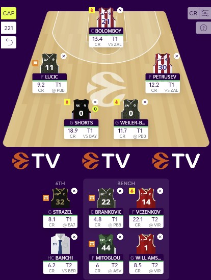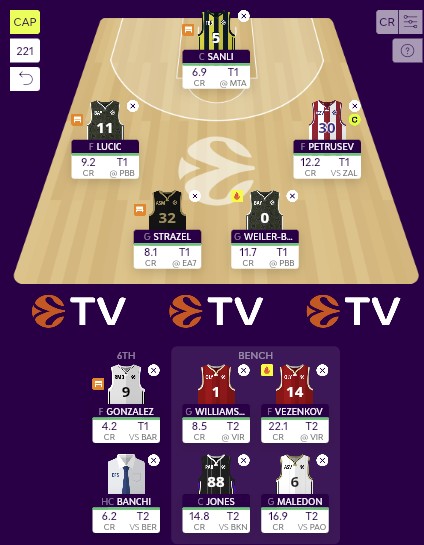 Speaking of T1 captain, we will probably trust Filip Petrusev. Red Star is facing Zalgiris which appears vulnerable in the 4 and 5 spots, while the Serbian PF's minutes and output looks to have not been affected by the return of Joel Bolomboy. Petrusev should also remain in our roster for the remaining regular season games.