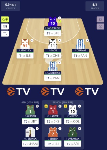 After reviewing the available Turn 1 options, we’ve decided to bring in Nikola TANASKOVIC (8.4 CR). The matchup against Beşiktaş won’t be easy, but Tanasković can deliver a strong value-to-performance ratio, as he contributes across multiple statistical categories. His high free-throw percentage adds extra stability to his fantasy output.