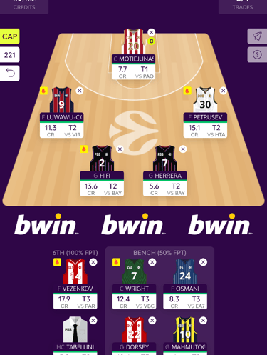 In order to stay on top of any last minute roster & team news/absences, we are using the ROTOWIRE page and their fantasy section for Euroleague basketball here. ROTOWIRE consistently provides the latest updates even with just a couple of minutes remaining before tip-off! So keep an eye and cut your losses short.