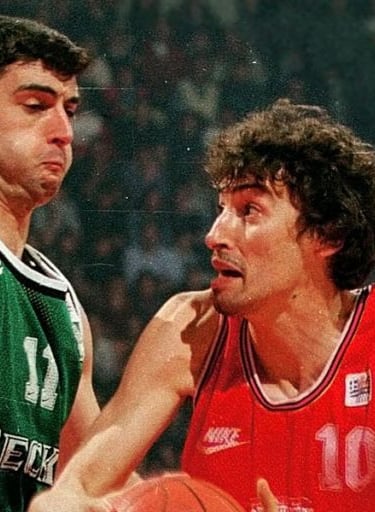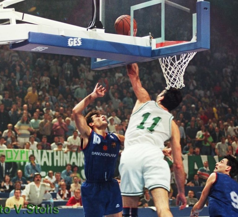Božidar Maljković was tasked with bringing Panathinaikos to the top of Europe, and the Giannakopoulos family provided him with a "nuclear" weapon. The NBA great Dominique Wilkins arrived as a saviour, but from the start, his relationship with Maljković was problematic. When both eventually compromised, the team found some calm and managed to advance as third in their group to face Benetton Treviso in the quarterfinals. The Italians had home-court advantage. Panathinaikos won narrowly in Athens, lost heavily in the return leg in Treviso, and on March 14, 1996, Željko Rebrača was preparing to take a shot from four meters to give his team the victory and qualification. Vranković’s outstretched hand stopped the Italian dreams, and the ticket to the Final Four in Paris was issued in the name of Panathinaikos instead. In the semifinal with CSKA, the "Dalmatian wall" rose to deny the Russians seven times, Dominique shredded the Russian defence with a 35-point performance, and the 8,000 Panathinaikos fans scheduled their meeting for the big final on April 11 with the "Bull of Catalonia." Let’s fast forward to the last 36" of the game. Giannakis had the ball with a clear intention to attack at the end of the clock, so as not to leave much time for Barcelona. Suddenly, with the suspicion of a foul, he slipped, and the ball found its way to Galilea. While the scoreboard crew was giving a recital of errors, Montero was ready to score and paint the Cup in Blaugrana. In one of the most iconic final moments of European finals basketball history, just as time seemed to stop, the Spaniard suddenly saw a scarecrow covering the basket, blocking the ball against the backboard. As the fans held their breath, Stojan Vranković began a desperate race to save what he could. He covered 25 meters with three strides, almost trampling on poor John Korfas, who was in his way, and became the last moment hero - the man who appeared out of nowhere. He then fell on the court, injured from the overexertion, but got back up a little later to join the celebrations for a trophy that in large part were only taking place due to him.