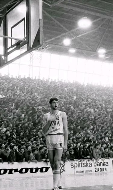 In Zadar, the cradle of Croatian basketball, the Dalmatian -now viewing the world from a height of 2.17 meters- poured rivers of sweat in daily, rigorous training under the supervision of local legend Josip "Pino" Gjergja. And vindication came for Vranković in 1981 when, donning the legendary No. 11 jersey (that of Krešimir Ćosić), he set foot on the iconic herringbone parquet of "Jazine." The qualities that would define his career were evident from the start: an exceptional defender, with long arms and remarkable jumping ability. He could grab rebounds effortlessly and acted as a goalkeeper who didn’t even let a fly get near the basket. However, his offensive limitations were also apparent, as he wasn’t a threat beyond three meters, and his moves were restricted. If he did get the ball near the basket though, he was nearly unstoppable. But in Zadar, with sharpshooter teammates like Branko Skroče and Petar Popović, no one expected Stojko to score. In the highly competitive Yugoslav league of the 1980s, where at least five teams vied for the title, Vranković’s defensive skills were invaluable to his coach. One of them, during his single season coaching the team, decided to utilize him offensively as well. Returning from Germany and the ill-fated EuroBasket 1985 for Yugoslavia, Stojan began preparations under the guidance of Vlade Đurović, the moustachioed moral champion of 1983 with Dražen’s Šibenka. In perhaps the best year of his career, Vranković averaged 20 points per game and achieved some dazzling & unmatched records, like 15 blocks in a game or 36 rebounds in a Korać Cup match against Hapoel Jerusalem. On April 26, 1986, in a packed "Dom Sportova," Zadar pulled off a major upset in the third and decisive finals match by breaking Cibona’s home-court advantage. Stojan was the star player of his team, the hero of the city, and one of the best centers in the league.